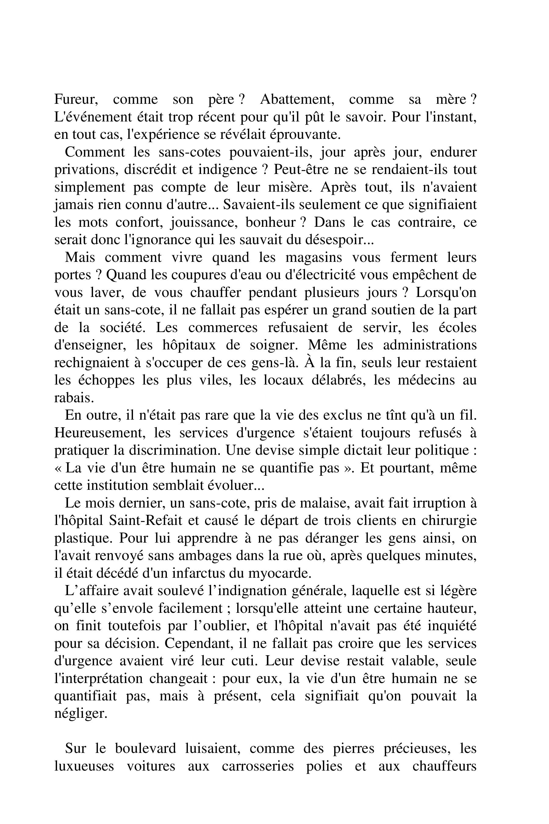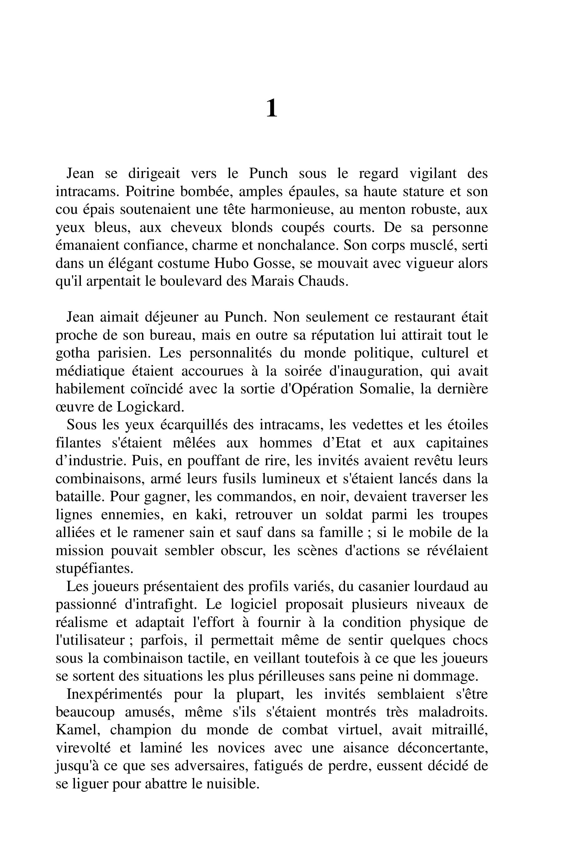• Dans un avenir proche, le monde entier, hyper sécurisé, est truffé de micro-caméras (ou"intracams"), de la taille d'une tête d'épingle et insérées dans les murs intérieurs et extérieurs des bâtiments, dans le goudron des trottoirs, dans les objets, etc. A la différence du Roman 1984, où seul le gouvernement espionne la population, chacun a accès à ce réseau de surveillance ultra-moderne, via l'internet du futur (ou "intra") où l'on peut évoluer à loisir comme dans u jeu vidéo en trois dimensions.