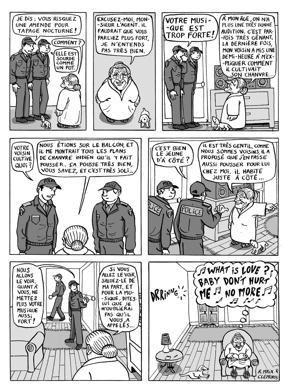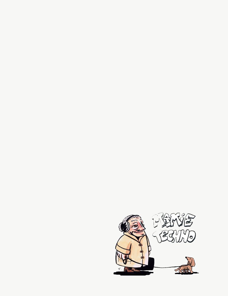 Mamie Techno, la mamie facétieuse, adepte de musique techno-dance et de cannabis.